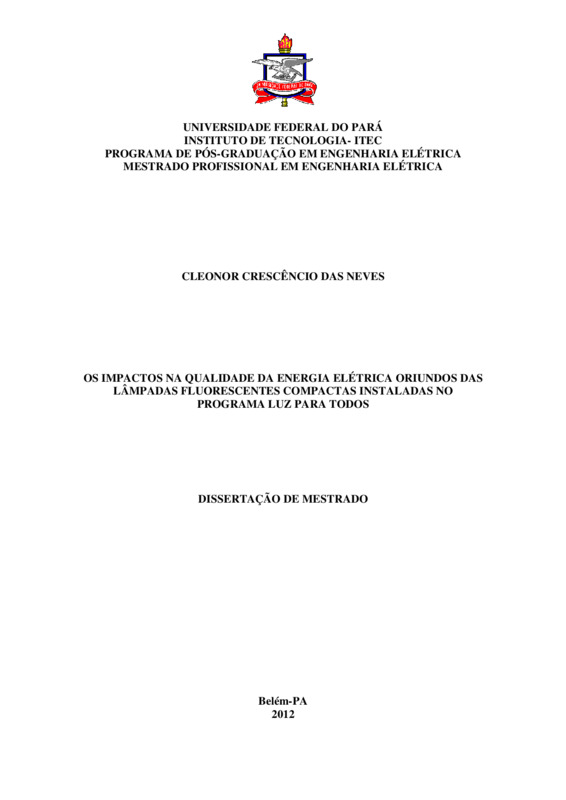 OS IMPACTOS NA QUALIDADE DA ENERGIA ELÉTRICA ORIUNDOS DAS LÂMPADAS FLUORESCENTES COMPACTAS INSTALADAS NO PROGRAMA LUZ PARA TODOS