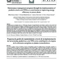 Maintenance management program through the implementation of predictive tools and TPM as a contribution to improving energy efficiency in power plants