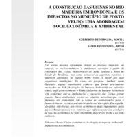 A construcao das usinas no rio madeira em rondonia e os impactos no municipio de porto velho uma abordagem socioeconomica e ambiental
