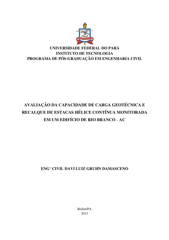 AVALIAÇÃO DA CAPACIDADE DE CARGA GEOTÉCNICA E RECALQUE DE ESTACAS HÉLICE CONTÍNUA MONITORADA EM UM EDIFÍCIO DE RIO BRANCO – AC