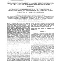 MEIO AMBIENTE NA PERSPECTIVA DO MODO VIGENTE DE PRODUÇÃO E SUA RELAÇÃO COM AS EMPRESAS DO SUB SETOR DE PAPEL E PAPELÃO