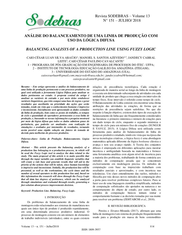 Palavras-chave: Linha de Produção. Balanceamento. Lógica Difusa.