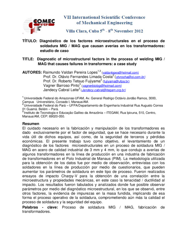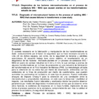 El cuidado necesario en la fabricación y manipulación de los transformadores es dado exclusivamente por el factor de seguridad, que se hace necesario durante la vida útil de dichos equipos, así como, de la seguridad de terceros y pérdidas económicas. El presente trabajo tuvo como objetivo, el levantamiento de un diagnóstico de los factores microestructurales en un proceso de soldadura MIG / MAG en acero de calidad industrial de 3 mm y 4 mm, lo que condujo a averías de algunos transformadores en la línea de producción en una industria de fabricación de transformadores en el Polo Industrial de Manaus (PIM). La metodología utilizada para la obtención de los datos fue por medio de observación, entrevistas con los soldadores en la línea de producción por medio de cuestionarios, que pueden aumentar los parámetros de soldadura en este tipo de proceso. Fueron realizados Ensayos de impacto Charpy-V para la obtención de una correlación entre la microestructura y propiedades mecánicas, en este caso la tenacidad / ductilidad al impacto. Los resultados fueron tabulados y analizados donde fue posible observarparámetros por medio del diagnóstico microestructural, en los que se observó, entre otros factores, la evidencia de impurezas en la masa fundida, implicando de esa forma el proceso operativo de la soldadura, comprometiendo aún más la calidad el proceso de soldadura y la seguridad del equipo.