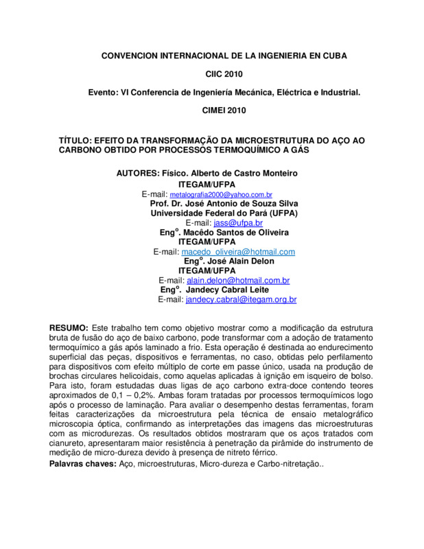EFEITO DA TRANSFORMAÇÃO DA MICROESTRUTURA DO AÇO AO CARBONO OBTIDO POR PROCESSOS TERMOQUÍMICO A GÁS