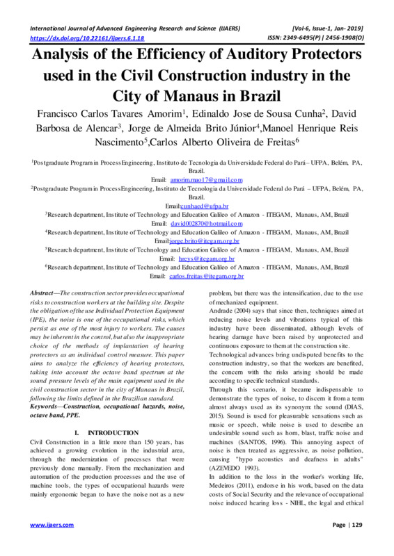 ANALYSIS OF THE EFFICIENCY OF AUDITORY PROTECTORS USED IN THE CIVIL CONSTRUCTION INDUSTRY IN THE CITY OF MANAUS IN BRAZIL