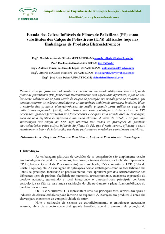 Estudo dos Calços Infláveis de Filmes de Polietileno (PE) como substitutos dos Calços de Poliestireno (EPS) utilizados hoje nas Embalagens de Produtos Eletroeletrônicos