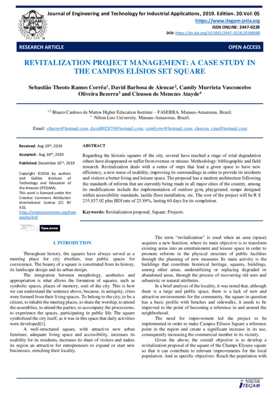 REVITALIZATION PROJECT MANAGEMENT: A CASE STUDY IN THE CAMPOS ELÍSIOS SET SQUARE