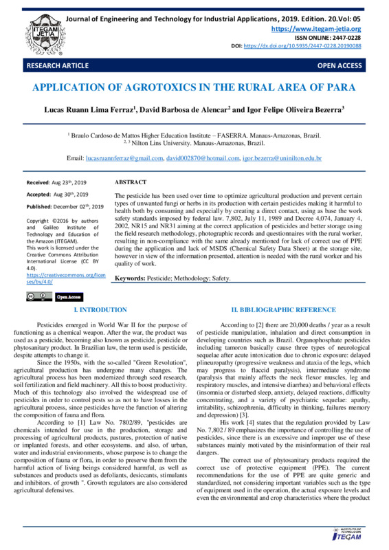 APPLICATION OF AGROTOXICS IN THE RURAL AREA OF PARA