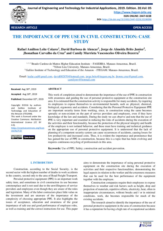 Keywords: Use of PPE; Safety; construction and accident prevention.