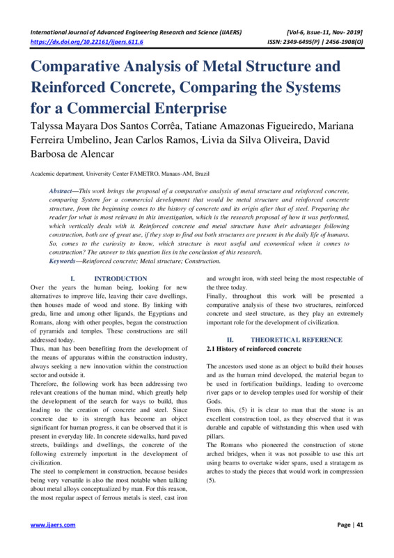 Abstract—This work brings the proposal of a comparative analysis of metal structure and reinforced concrete,