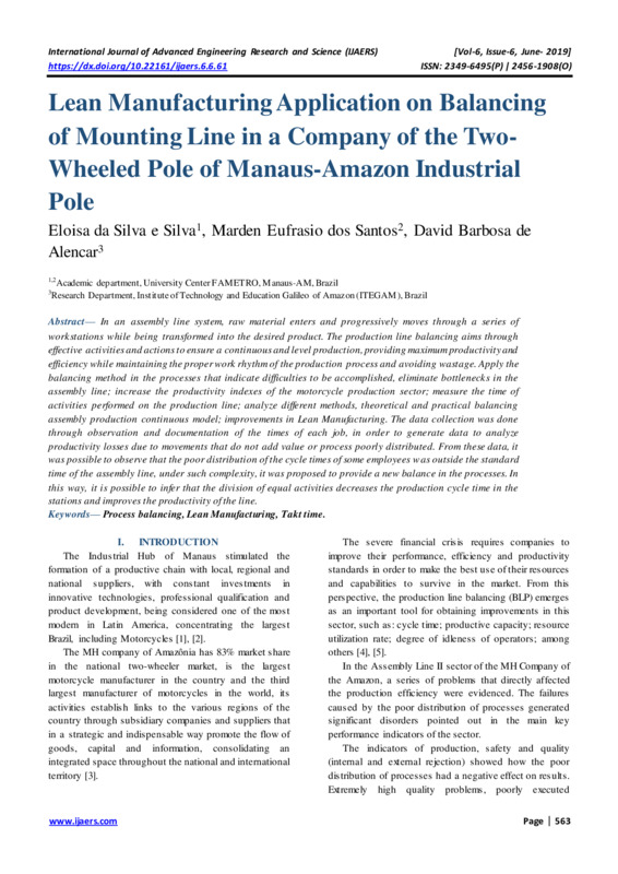 Lean Manufacturing Application on Balancing of Mounting Line in a Company of the TwoWheeled Pole of Manaus-Amazon Industrial Pole