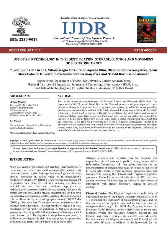 USE OF RFID TECHNOLOGY IN THE IDENTIFICATION, STORAGE, CONTROL AND MOVEMENT OF ELECTRONIC URNES
