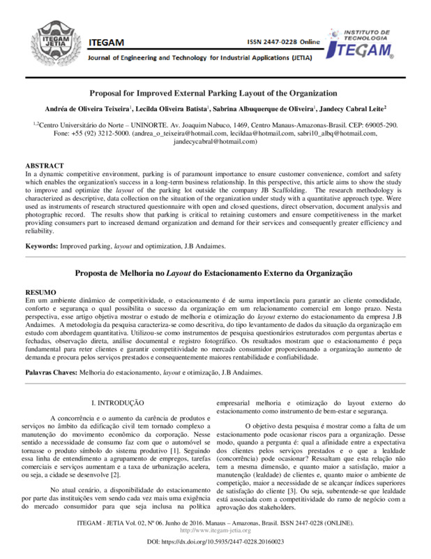 photographic record. The results show that parking is critical to retaining customers and ensure competitiveness in the market
