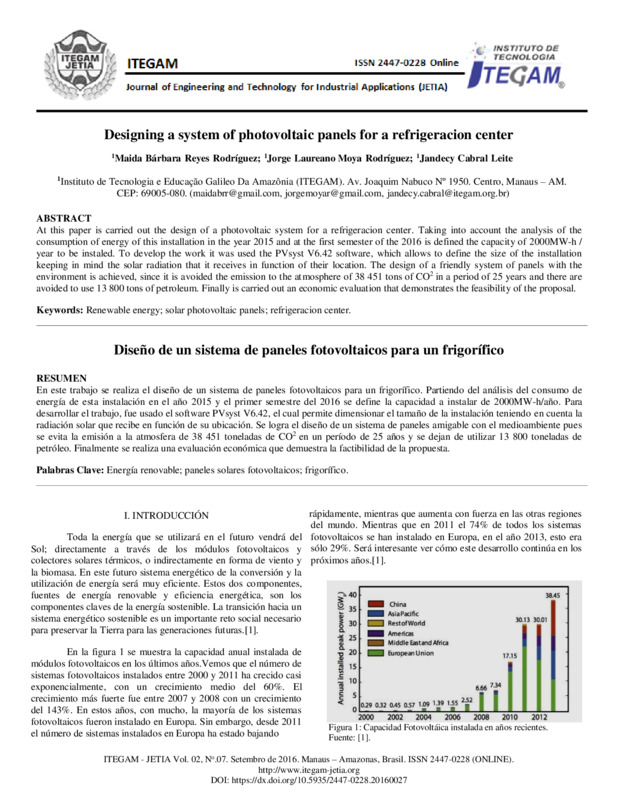 At this paper is carried out the design of a photovoltaic system for a refrigeracion center. Taking into account the analysis of the