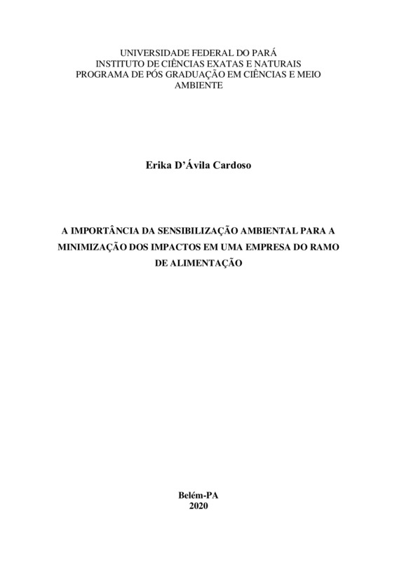 A IMPORTÂNCIA DA SENSIBILIZAÇÃO AMBIENTAL PARA A MINIMIZAÇÃO DOS IMPACTOS EM UMA EMPRESA DO RAMO DE ALIMENTAÇÃO