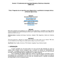 Proposta de um algoritmo para diagnosticar a qualidade de energia elétrica utilizando lógica fuzzy.