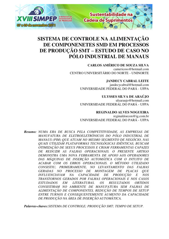 SISTEMA DE CONTROLE NA ALIMENTAÇÃO DE COMPONENETES SMD EM PROCESSOS DE PRODUÇÃO SMT – ESTUDO DE CASO NO PÓLO INDUSTRIAL DE MANAUS
