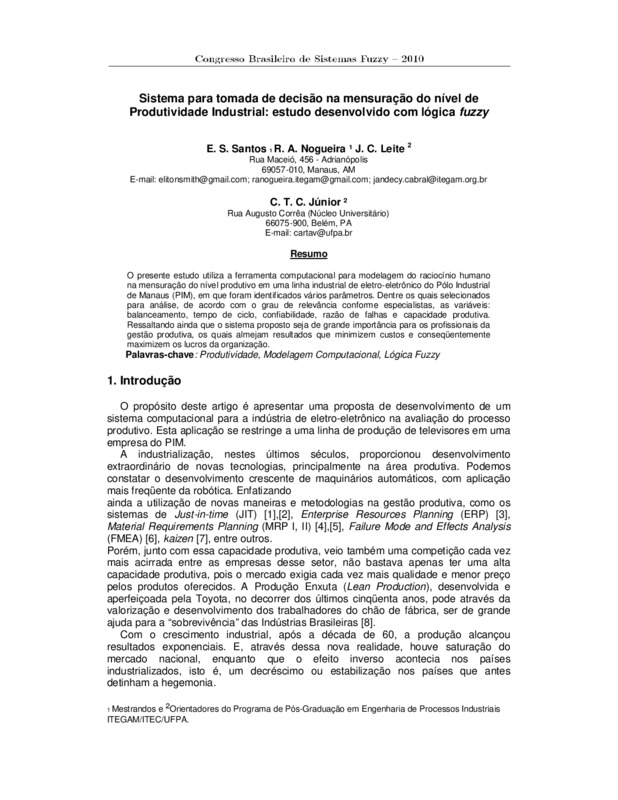 Sistema para tomada de decisão na mensuração do nível de Produtividade Industrial: estudo desenvolvido com lógica fuzzy