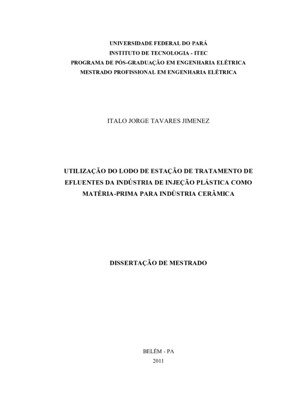 UTILIZAÇÃO DO LODO DE ESTAÇÃO DE TRATAMENTO DE EFLUENTES DA INDÚSTRIA DE INJEÇÃO PLÁSTICA COMO MATÉRIA-PRIMA PARA INDÚSTRIA CERÂMICA