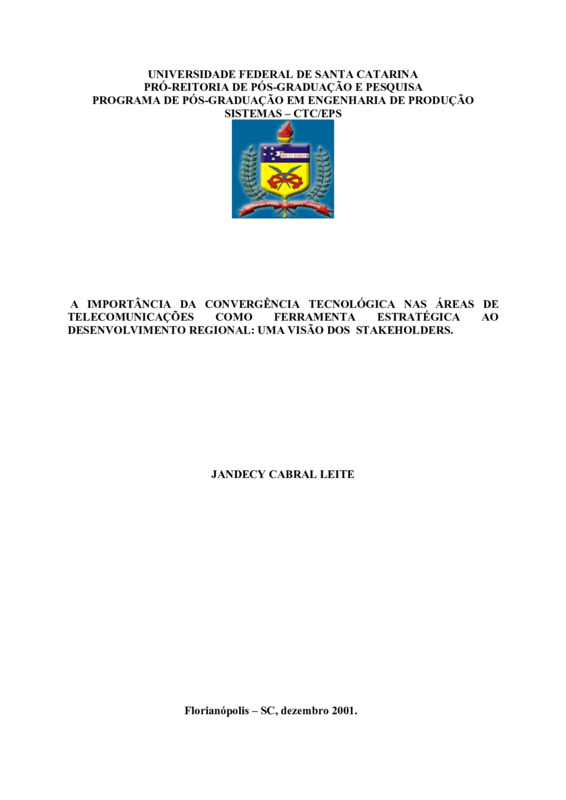 A IMPORTÂNCIA DA CONVERGÊNCIA TECNOLÓGICA NAS ÁREAS DE TELECOMUNICAÇÕES COMO FERRAMENTA ESTRATÉGICA AO DESENVOLVIMENTO REGIONAL: UMA VISÃO DOS STAKEHOLDERS.