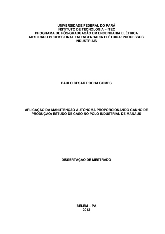 APLICAÇÃO DA MANUTENÇÃO AUTÔNOMA PROPORCIONANDO GANHO DE PRODUÇÃO: ESTUDO DE CASO NO POLO INDUSTRIAL DE MANAUS
