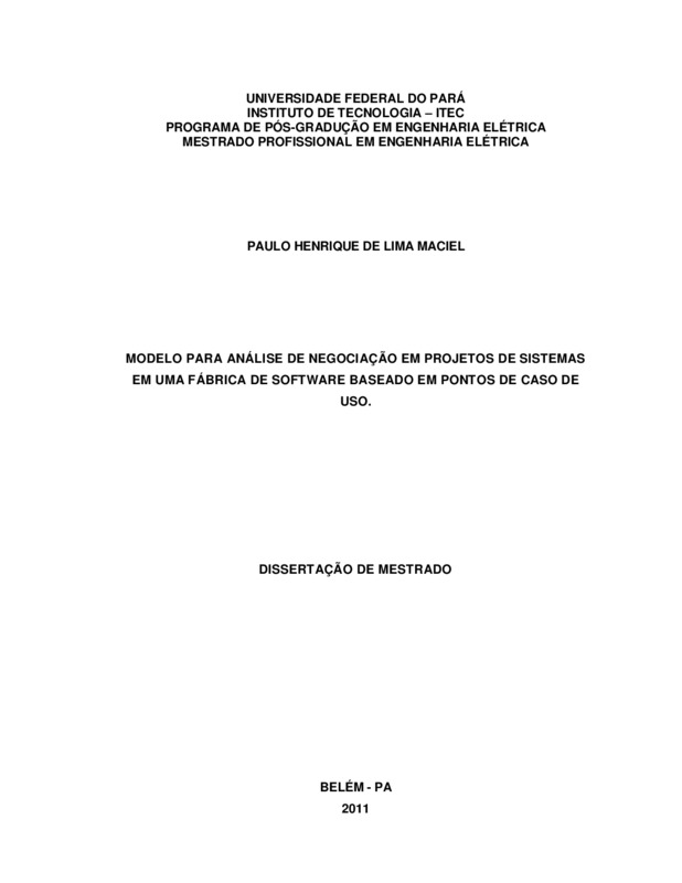 MODELO PARA ANÁLISE DE NEGOCIAÇÃO EM PROJETOS DE SISTEMAS EM UMA FÁBRICA DE SOFTWARE BASEADO EM PONTOS DE CASO DE USO.