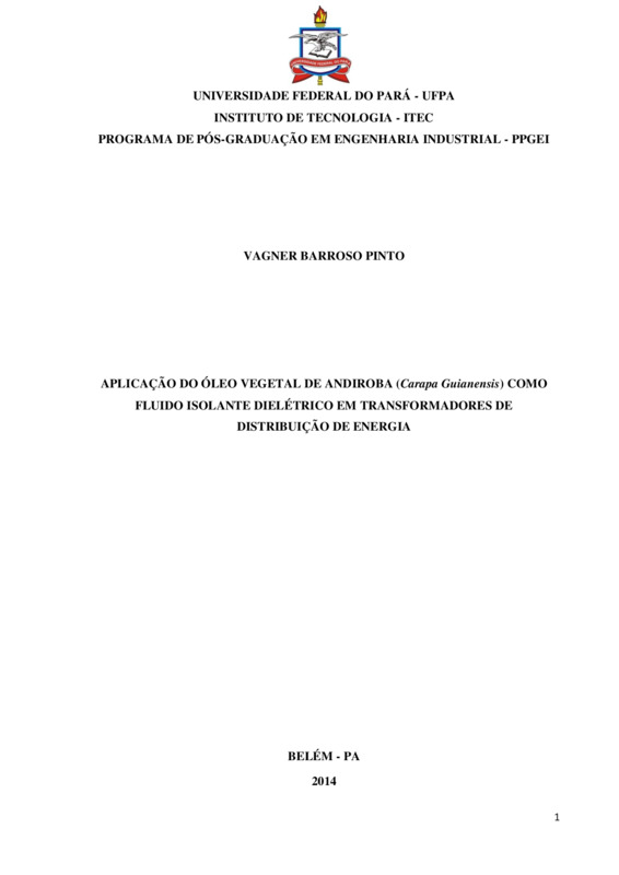 APLICAÇÃO DO ÓLEO VEGETAL DE ANDIROBA (CARAPA GUIANENSIS) COMO FLUIDO ISOLANTE DIELÉTRICO EM TRANSFORMADORES DE DISTRIBUIÇÃO DE ENERGIA