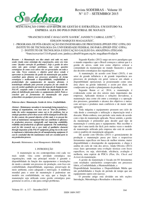 Manutenção como atividade de gestão e estratégia: um estudo na Empresa alfa do polo industrial de Manaus