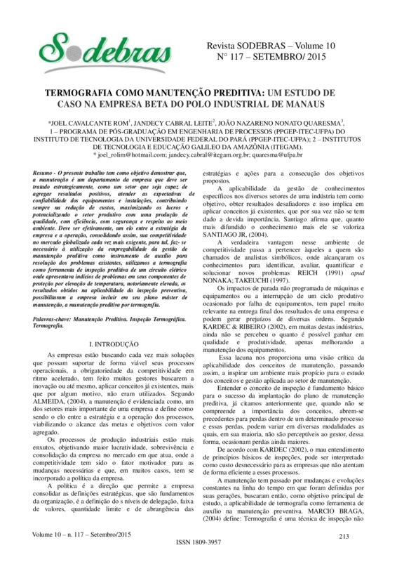 Termografia como manutenção preditiva: um estudo de caso na empresa beta do polo industrial de manaus