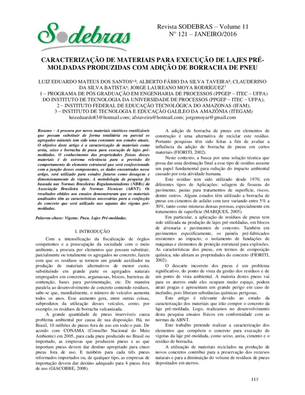 Caracterização de materiais para execução de lajes pré-moldadas produzidas com adição de borracha de pneu