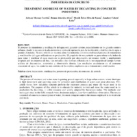 El proceso de tratamiento y reutilización del agua está ganando terreno, especialmente en los grandes centros urbanos, donde la escasez es la alta inversión y costos de operación para la recolección y distribución de agua a grandes distancias. En este artículo se muestra cómo las industrias concretas realizan el proceso de tratamiento y reutilización del agua utilizada en su producción. El propósito de este artículo es para educar a la industria para tratar y reutilizar el agua usada en su producción por decantación, un recurso viable y ampliamente adoptada por las empresas de hoy. Los métodos y las técnicas utilizadas en la investigación de campo fueron: análisis de documentos, entrevistas y observación directa. Los resultados consistieron en el consumo consciente de agua, los controles más estrictos de los medios empleados en su tratamiento y reutilización.