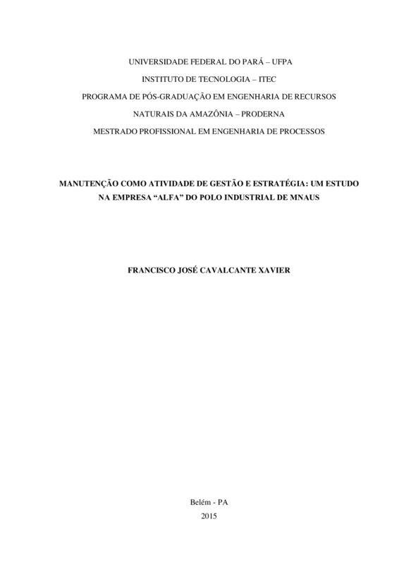 Manutenção como atividade de gestão e estratégia: um estudo na empresa “alfa” do polo industrial de Manaus.