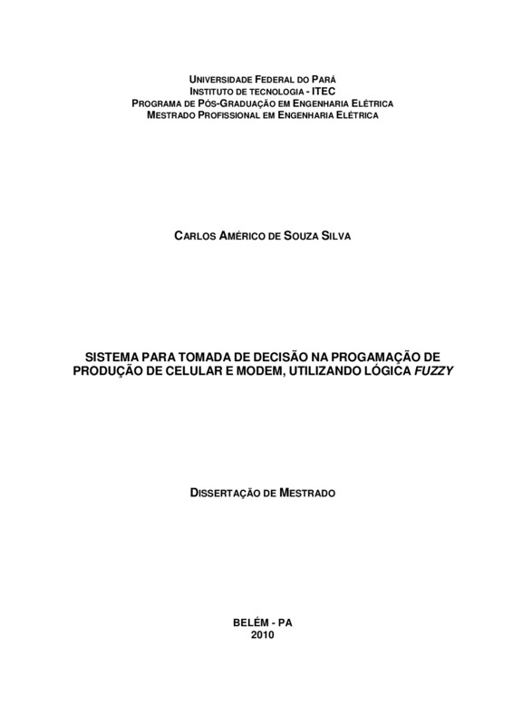 SILVA, C. A. S. Sistema para tomada de decisão na programação de produção de celular e modem, utilizando lógica fuzzy. Dissertação de Mestrado. Instituto de Tecnologia – Universidade Federal do Pará, Belém, 2010. 84 p.