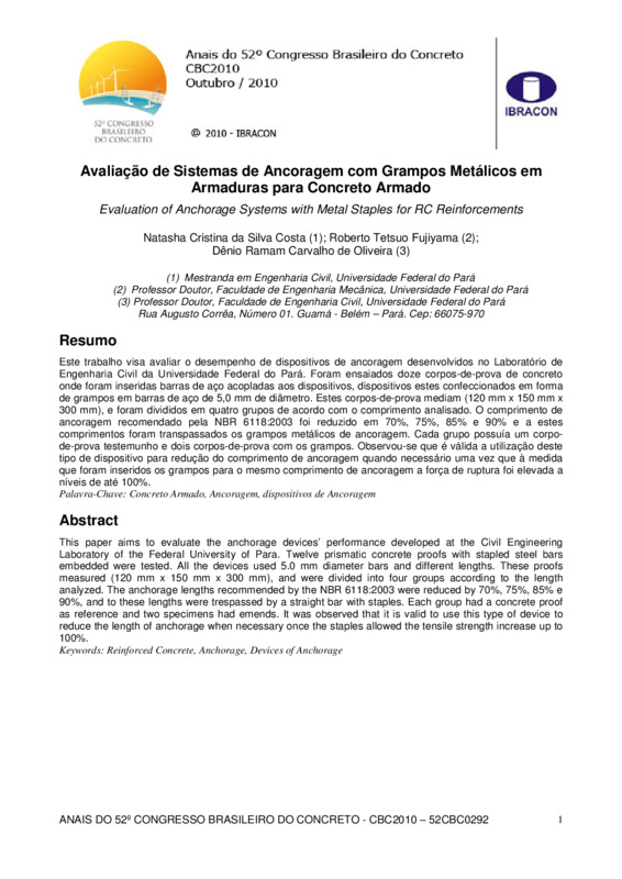 Palavra-Chave: Concreto Armado, Ancoragem, dispositivos de Ancoragem