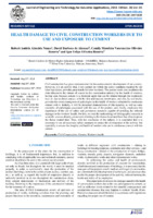 HEALTH DAMAGE TO CIVIL CONSTRUCTION WORKERS DUE TO USE AND EXPOSURE TO CEMENT Civil construction has great representation for the socioeconomic development of our country. However, it is an activity that, if not carried out within the safety standards required by our labor legislation, provides great trends for labor incidents. The present work aims to address the risks inherent to the misuse of cement in the construction industry for the health of workers, having seen, because cement is a chemical agent that can be inhaled through the respiratory tract or, due to direct contact. with the skin and mucous membranes, and also, by oral intake, provides the severe emergence of pathologies in the health of workers submitted to continuous contact with it. Initially, it will be presented characteristics of this material, as well as some examples of pathologies associated with the use of the product and, finally, emphasize the importance of the use of safety and prevention measures capable of avoiding the referred damages to the workers’ health. For this, we used the methodology of bibliographic research in scientific sources already consecrated referring to the theme dissertated here that allow to prove the theme treated here. Thus, with the conclusion of the subject, it is concluded that it is necessary to use all necessary safety measures to ensure the development of the activity, but especially to ensure the integrity and health of workers who are in continuous contact with the cement. Keywords: Civil Construction; Cement; Worker's health. -