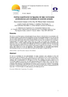 Análise experimental de ligações de concreto armado ao cisalhamento RESUMO Este trabalho visa analisar o comportamento de ligações entre elementos de concreto armado ao cisalhamento. Foram ensaiadas em duas etapas 08 ligações do tipo pilar–viga em balanço, sendo que o trecho em balanço mediu 150 mm x 100 mm x 150 mm e os pilares apresentaram dimensões de 150 mm x 120 mm x 300 mm no Laboratório de Engenharia Civil da Universidade Federal do Pará. Na primeira etapa foi verificada a resistência ao cisalhamento de 05 ligações de referência, todas monolíticas sendo que 04 foram sem nenhum tipo de armadura e, 01 com armadura de flexão na viga. As demais ligações foram confeccionadas em duas etapas, sendo que as taxas geométricas das armaduras de flexão variaram e suas barras foram fixadas no pilar com adesivo epóxi. O concreto apresentou resistência à compressão de 20 MPa, sendo que duas ligações monolíticas apresentaram seixo rolado e outras duas brita calcária. São apresentados resultados para cargas últimas, deformações do aço e do concreto, bem como mapas de fissuração. Palavra-Chave: Concreto armado,Ligações , Cisalhamento. -