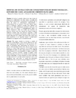 SISTEMA DE EXTRACCIÓN DE CONOCIMIENTOS DE REDES NEURALES . ESTUDIO DE CASO: ANÁLISIS DE CRÉDITO BANCARIO. Este artigo se propõe a desenvolver um sistema de extração de conhecimento de redes neurais auxiliada pela lógica fuzzy enfatizando a importância da geração de um banco de regras de conhecimento representando o comportamento de um processo. De posse dessas regras, pode-se facilmente construir sistemas para controlar tais processos ou obter informações peculiares sobre eles. Em alguns casos, no entanto, é demasiadamente difícil (ou mesmo impossível) obter um modelo que descreve um processo, porém existe um conjunto de valores empíricos exibindo a forma como esse processo responde a certas excitações. Uma proposta recente para se obter tal banco de regras seria usar esse conjunto de pontos para treinar uma rede neurofuzzy e, em seguida, extrair o conhecimento distribuído nas ligações entre as camadas da rede. -
