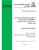 PERCEPÇÃO DOS MORADORES DO IGARAPÉ DE MANAUS SOBRE O PROSAMIM E A PRESTAÇÃO DE SERVIÇOS PÚBLICOS EM MANAUS - AM. O presente trabalho tem como marco teórico um estudo da percepção dos moradores do Igarapé de Manaus em relação ao PROSAMIM e aos serviços públicos. O estudo da ocupação humana no igarapé de Manaus teve seu início em 1995, com apresentação de uma Monografia, que já apresentava o precário cuidado ao meio ambiente e específico referente ao saneamento básico e a urgência de providências para sua minimização. Através de pesquisa de campo que se constituiu da aplicação de 53 questionários nas unidades familiares, investigou-se a percepção dos moradores sobre as condições, os sentimentos e as participações públicas relativas aos serviços de água, esgotos, lixo, drenagem e arborização, no Igarapé de Manaus-AM. Como resultado, constatou-se que, a partir do serviço de água, suas situações e sentimentos decrescem, sucessivamente, para os serviços de esgotos, limpeza pública, drenagem e arborização. Em todos eles, a participação popular, assim como a ocorrência de campanhas que poderiam potencializá-la, além de colaborar com os demais aspectos questionados, não eram as desejáveis. Do confronto dos resultados obtidos com princípios de ocupação humano, nos viés socioeconômico e ambiental concluiu-se que, em diferentes níveis, todos os serviços avaliados não se mostraram sustentáveis e colaborativos plenamente. Finalizando, sugere-se que os serviços de saneamento básico e recursos ambientais urbanos contribuam, mutuamente, com o controle, gerenciamento e prestar informações para realizar seus respectivos potenciais, ou seja, melhorar qualidade de vida dos moradores e despertar a percepção pública, além de contribuir para a inserção socioeconômica e ambiental nos problemas das águas servidas do Igarapé de Manaus, de forma a torná-los, um ambiente urbano saudável. Palavras-chave: Saneamento básico, Águas Servidas e Assentamento Urbano. -