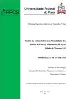 ANÁLISE DA COLETA SELETIVA NA MODALIDADE DOS PONTOS DE ENTREGA VOLUNTÁRIA (PEV) NA CIDADE DE MANAUS/AM Este trabalho objetivou a descrição e análise sistêmica na gestão da coleta seletiva de resíduos sólidos, em Manaus/Am, na modalidade de entrega voluntária (PEV) entre os anos de 2012 e 2014. Foi feita uma análise crítica/comparativa do sistema PEV com outras modalidade de coleta seletiva existentes no município abordando aspectos quali-quantitativos. Foi evidenciado, na comparação que ele é de maior valor de mercado, se agregado com ações organizadas de catadores, bem como, que ainda é frágil a coleta seletiva no município em face da descontinuidade do processo, apear de ampla legislação sobre o tema. O vidro, em 2013, apresentou crescimento quando comparado aos anos de 1982, 1992, 2006 e 2011, assim como os metais e a madeira. A renda mensal obtida por catador do núcleo é de R$ 515,67. A taxa de recuperação de recicláveis é de 17%, influenciada pelo acondicionamento dos resíduos. Há recomendação para que esse material seja separado na fonte geradora, evitando contaminação, aumentando o valor agregado da comercialização e diminuindo os custos de reciclagem. Palavras-chave: Resíduos Sólidos. Coleta Seletiva. PEV. Reciclagem. Manaus/AM -