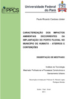 CARACTERIZAÇÃO DOS IMPACTOS AMBIENTAIS DECORRENTES DA IMPLANTAÇÃO DO PORTO FLUVIAL NO MUNICÍPIO DE HUMAITÁ – ATERROS E CONTENÇÕES O presente estudo apresenta as ideias que conduziram a pesquisa realizada no período entre os anos 2012 e 2014, no município de Humaitá localizado às proximidades da margem esquerda do Rio Madeira. O trabalho visou caracterizar os impactos ambientais decorrentes da implantação do porto fluvial no município de Humaitá – aterros e contenções. Neste contexto, a implantação de um Terminal Hidroviário alavancou significativamente a organização portuária para embarque e desembarque de passageiros e de cargas. Porém, evidenciou problemas construtivos na execução do aterro e na contenção em geo-célula que passou a ser motivo de investigação. Para isso, a divulgação dos dados obtidos em visita técnicas ao longo da construção e definições de parâmetros da melhor solução de implementação serviram de alicerce da metodologia empregada, qual foi possível trabalhar com as pesquisas do tipo bibliográfica, exploratória, assim caracterizando um estudo de caso o qual proporcionou um maior esclarecimento do tema proposto e resultados obtidos. Para melhor compressão dos dados obtidos foi utilizado o método qualitativo fazendo o uso de tabelas para demonstração e esclarecimento dos resultados alcançados. Diante das análises dos dados obtidos foi possível identificar os locais em que o solo possa sofrer erosão e sugere-se a presença de monitoramento contínuo através de um consultor na área ambiental e paisagística, disponibilização de recursos financeiros inseridos com as problemáticas e cronogramas de projeto melhores definidos. Explorar novas soluções tecnológicas, promovendo a sustentabilidade nas ações relacionadas à instalação e operação dos terminais, distinguindo o porto como um líder ambiental e de cumprimento da legislação e engajando e educando a comunidade sobre o desenvolvimento do porto e seus programas ambientais segue como premissa deste trabalho. É necessário que as Autoridades Portuárias parem de ver os custos em meio ambiente como um gasto extra da atividade, redutor dos lucros, passando a encarar esses gastos como investimento, são algumas das oportunidades que levamos a divulgar amplamente aos nossos sucessores, não ficando somente a construção física de uma estrutura portuária o sentimento de dever cumprido, Palavras-chave: Impactos Ambientais. Porto Fluvial. Aterros e Contenções -