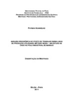 ANÁLISE ERGONÔMICA NO POSTO DE TRABALHO NUMA LINHA DE PRODUÇÃO UTILIZANDO MÉTODO NIOSH – UM ESTUDO DE CASO NO PÓLO INDUSTRIAL DE MANAUS. O presente trabalho visa realizar uma análise ergonômica em uma linha de produção. Através de pesquisas, análises de relatórios e procedimentos tornou-se possível chegar a conclusões que permitiram formular propostas que objetivam à redução do impacto do trabalho realizado na saúde do colaborador. Sendo assim, o objetivo principal desta pesquisa é analisar a situação ergonômica da linha de produção focalizando a biomecânica do trabalho. A justificativa é em virtude da grande evasão de colaboradores devido aos problemas de saúde relacionados a ergonomia , derivados dos principais problemas que enfrentam com o manuseio e movimentação de cargas pesadas, como a dor lombar, levando a apresentar problemas crônicos e agudos. O método utilizado consistiu, primeiramente, no levantamento de dados reais de produção na empresa, nos casos similares estudados em literatura e nos cálculos matemáticos que puderam comprovar as análises, observando-se que, apesar dos avanços da tecnologia e a mecanização das tarefas, muitas atividades continuam sendo realizadas manualmente. As conclusões obtidas deixam claros os cuidados que se devem ter com a saúde do colaborador através da implementação de ações que visem a melhoria da área de trabalho com equipamento adequado para a atividade a ser desempenhada, redundando em benefícios tanto para o empregado como para o próprio empregador. Palavras-chave: Ergonomia, Biomecânica, Movimentação de Cargas e Saúde. -