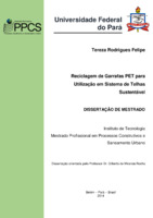 RECICLAGEM DE GARRAFAS PET PARA UTILIZAÇÃO EM SISTEMA DE TELHAS SUSTENTÁVEL Dentre todas as formas de resíduos sólidos que são depositados diariamente na natureza, as garrafas de poli tereftalato de etileno (PET), que são utilizadas principalmente pelas indústrias de refrigerantes, são motivo constante de preocupações dos ambientalistas. Para se ter uma ideia da dimensão deste resíduo; apenas 53% das garrafas PET são reaproveitadas no Brasil; ou seja, das 430 mil toneladas produzidas anualmente, 202,1 mil toneladas são descartadas no meio ambientem e quando encaminhadas aos aterros sanitários ocupam espaços consideráveis, além de prejudicar a decomposição do material orgânico, pois impermeabiliza certas camadas de lixo, não permitindo a circulação de gases e líquidos, acelerando o processo de esgotamento do aterro. A degradação por garrafas PET no meio ambiente; dependendo do tipo de processo de produção, dura de 400 a 800 anos. O objetivo do trabalho é aplicar a Gestão Ambiental na empresa Inova da Amazônia S/A de maneira mais ampla, visando o ordenamento das atividades humanas para que originem o menor impacto possível sobre o meio ambiente, dando foco na produção de telha ecológica a partir da reciclagem de garrafas PET. Os métodos e as técnicas aplicadas consistem numa descrição passo a passo de como foi conduzida a pesquisa, informando os instrumentos de pesquisa, uma descrição detalhada do método de coleta e análise de dados, mostrando as vantagens, desvantagens e limitações da metodologia, bem como das formas de contornar essas limitações que foram empregadas. Os resultados foram alcançados; mostrando os benefícios da construção de coberturas produzidas a partir da reciclagem de garrafas PET, visando à melhoria do setor produtivo e meio ambiente e a possibilidade de geração de empregos diretos e indiretos a partir do estabelecimento da cadeia de coleta, seleção e produção da telha. Ainda assim, a garrafa PET reciclada possui alta resistência mecânica, baixo peso e baixa permeabilidade de gases que faz o diferencial para a área da construção civil. Foi feita uma comparação de peso e custo; (diferença entre a telha de barro, e a telha produzida da reciclagem de garrafas PET). Entre os principais resultados técnicos do trabalho pode-se destacar que foi conseguido melhorar a qualidade do produto mediante algumas alterações na fórmula que compõe a telha e foram alcançados bons resultados no produto que de certa forma contribui para o engrandecimento do meio ambiente e da sustentabilidade da cidade de Manaus. Palavras – Chaves: Reciclagem de Garrafas PET, Sistema de Telha Sustentável e Gestão Ambiental. -