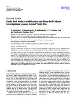 Garlic Peel Surface Modification and Fixed-Bed Column Investigations towards Crystal Violet Dye Garlic peel, a low-cost agro-waste, was explored as an adsorbent for the remediation of wastewater containing the crystal violet (CV) cationic dye. The garlic peel was treated with NaOH at 1 : 1.5 ratios in order to modify the surface and increase its porosity. The surface-modified garlic peel was ground to a smaller size in order to increase its surface area and used as an adsorbent in the continuous column investigations. Column parameters such as bed height, flow rate, and initial concentration were optimised and found that optimal removal efficiency was achieved at 3 ml rate of flow, 3 cm column depth, and 100 mg l-1 initial concentration. The surface-modified garlic peel exhibited a higher loading capacity of 99.9 mg g-1 towards CV at optimised conditions. SEM investigations confirmed the surface modification and increase in porosity of the garlic peel. The column data was tending to fit well with Thomas and Yoon-Nelson’s models suggesting the scalability to an industrial level. Regeneration of MGP was successful with 0.01 M HCl solution. These results conclude that garlic peel is a potential agro-waste material that can be used to mitigate water pollution