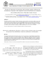 Sistema de indicação de direções e alerta contra colisões para locomoção de pessoas com deficiência visual em ambientes estruturados Este artigo trata do desenvolvimento de Tecnologias Assistivas com intuito de proporcionar ou ampliar habilidades funcionais de pessoas com deficiência visual, analisando de uma maneira geral percebe-se que a evolução tecnológica caminha na direção de tornar a vida mais fácil, este projeto trata exatamente da criação de um indicador de direção e alerta contra colisões tendo como base uma unidade de processamento de dados, sistema de localização aproximada received signal strength indicator (RSSI), ou Indicador de intensidade do sinal residual em português, em ambientes estruturados aliado a uma unidade de reconhecimento de obstáculos que possibilite orientar o deficiente por meio do envio de sinais sonoros.