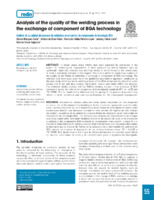 Analysis of the quality of the welding process in the exchange of component of BGA technology Actualmente muchos esfuerzos están siendo realizados por las empresas en busca del perfeccionamiento tecnológico de los productos, agregando aspectos tales como ligereza, reducción de las dimensiones y altos niveles de desempeño al menor costo posible para atender una demanda mundial en este sentido. El objetivo de este artículo fue realizar un análisis de la calidad del proceso Reflow de soldadura en el intercambio de componente de tecnología BGA. Los métodos y las técnicas utilizados tuvieron un enfoque cualitativo-cuantitativo, orientado mediante la técnica de estudio de caso en el proceso de la soldadura del componente BGA mediante la recopilación (cross section y rayos X) y el análisis de datos (alineación, grietas y vacíos) dentro del proceso. Los resultados alcanzados demostraron que el proceso de Reflow de la soldadura en el intercambio del componente BGA cumple los criterios de aceptación de las normas internacionales IPC – A-610E e IPC 7095B. Este hecho lleva a inferir que la calidad del proceso en cuestión puede influir en mejores condiciones de costo y de competitividad para la organización investigada.