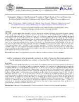 Análisis comparativo de las propiedades mecánicas de Matrix Composites Reforzados poliéster a base de partículas añadidas con, continua y Alineados fibra Tauari (Couratariguianensis) El Tauari es otra fibra natural investigado con el fin de analizar las propiedades mecánicas del polímero proceso de fabricación de materiales compuestos. En este trabajo se dirige a las propiedades mecánicas de los materiales de evaluación basado en composites de poliéster reforzado con fibra de partículas tauari de 10 mm y 15 mm de largo. Los materiales compuestos de poliéster reforzado con fibra de tauari continua y alineada también se incluyeron en el presente estudio. Las fibras utilizadas en los experimentos no pasar por ningún tipo de proceso químico durante el proceso de fabricación de materiales compuestos, toda la fabricación se ha realizado de forma manual y la proporción de masa utilizado por las fibras dentro de cada compuesto fueron: 10,58% - 10 mm de fibra tauari partículas; 5,22% - 15 mm de fibra tauari partículas. Los resultados de las pruebas de tracción presentan que la resistencia mecánica del material compuesto aumentó cuando se incrementó la longitud de la fibra utilizada y las fibras tenido una mejor alineación que aumentó el contacto fibra-matriz. Los resultados de los ensayos de tracción fueron: 10 mm de fibra de partículas tauari - 18,84MPa; 15 mm de fibra tauari partículas - 19,08MPa; alineado y fibra tauari continua - 19,20MPa. Estos resultados se compararon con otra fibra natural de investigaciones anteriores que utilizan el método de cantidad y calidad, y se concluyó que los materiales compuestos poliméricos reforzados con fibra tauari u otros materiales que utilizan la fibra tauari se pueden aplicar en el entorno industrial en muchos sectores