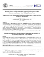 Harmonic Impact analysis coming from the manufacturing processes of a Eletroeletrônica Industry Using KDD and Decision Trees O trabalho aborda a análise do impacto de distorção atual, devido as freqüências harmônicas presentes na rede de energia de uma instalação de indústria em Manaus durante o processo de dispositivos de informática de fabricação. A razão para essas frequências para aparecer são a presença de cargas não lineares a partir de computadores pessoais, notebooks e tablets. Os dados foram coletados em uma campanha de medição durante uma semana, usando analisadores de energia de qualidade a diferentes processos de produção fornecidos pela 13,8kV e com uma carga nominal de 800 kVA. O principal objetivo deste trabalho é apresentar uma análise baseada em inteligência computacional utilizando árvore de decisão para determinar e quantificar as distorções harmônicas comumente presentes no processo de fabricação de indústrias de informática usando medições simultâneas de tensão e corrente para determinar qual processo tem o maior impacto no distorção harmônica total no ponto de acoplamento comum entre a fábrica e os concessionários de energia.