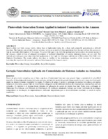Photovoltaic Generation System Applied in isolated Communities in the Amazon Passar de uma matriz energética suja e finita, cuja base é fundamental hoje para uma geração limpa e sustentável, é uma difícil transição. A Amazônia pode prestar relevantes serviços, servindo de modelo de geração limpa a partir do sol e como essa fonte pode ajudar no desenvolvimento sustentável da região. O objetivo do artigo é mostrar a aplicação da energia fotovoltaica em regiões isoladas do Amazonas, que por falta de investimentos adequados ou inviabilidades técnicas de integração aos sistemas hoje, não são utilizados. Os métodos e as técnicas foram retirados de aplicações de campo do projeto Luz para Todos com a utilização de Miniusinas Fotovoltaicas com Minirede de Distribuição. Os resultados alcançados indicam que existe viabilidade da tecnologia, independente da localização do empreendimento, indicando importância para o desenvolvimento econômico e social da região amazônica.