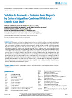 Solution to Economic – Emission Load Dispatch by Cultural Algorithm Combined With Local Search: Case Study Economic-emission load dispatch uses the fuel cost variables and gas emission in a minimized way to obtain an optimal operation in generation units in a power plant, guaranteeing the supply of demand. The first variable is definitive to ensure business continuity and the second to comply with environmental legislation and no degradation of the environment. This paper analyzes the use of a new computational optimization algorithm based on the cultural algorithm (CA), improved with local search techniques simulated annealing and Tabu search, using data from a real power plant with 10 generators and the system of the IEEE with 13 generating units. The application has two options of operation: the classic one, which operates with all generators seeking to minimize the cost and emission meeting the specified demand; and the controlled one, which turns off the generators that have the highest incremental fuel cost but guaranteeing the demand and reducing the emission of gases. Simulations were performed on the six possible options in this application. The results obtained were compared with each other and with the results of other techniques reported in the literature. The local search that improved the CA and the new way of updating topographic knowledge allowed the results to be better than those found by other metaheuristics that solved the same problem of the real plant and the IEEE system.