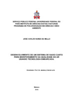 DESENVOLVIMENTO DE UM SISTEMA DE BAIXO CUSTO PARA MONITORAMENTO DA QUALIDADE DO AR USANDO TECNOLOGIA EMBARCADA Este trabalho teve por objetivo o desenvolvimento de um sistema de baixo custo para monitoramento da qualidade do ar usando tecnologia embarcada, tendo por objetivo apresentar a placa Arduino UNO no Monitoramento Ambiental. Foram usados sensores disponíveis no mercado, tais como: sensores de temperatura DHT11; Sensor de pressão atmosférica BMP180; Sensor de O3 MICS 2614; Sensor de NO2 MICS 2714; Sensor de CO MQ-7; Sensor de partículas PM 2,5 PPD42 NS. Na elaboração do trabalho foram adotados os seguintes procedimentos metodológicos: revisão bibliográfica, com a utilização de livros, artigos científicos e trabalhos acadêmicos sobre a temática poluição do ar e o Arduino UNO e suas tecnologias, estudo das tecnologias empregadas para a execução e montagem do circuito eletrônico que foi interligada a placa Arduino com o módulo leitor micro SD, sensores, display LCD e a matriz de contato, além de descrever as diferentes partes individuais do sistema, testes realizados e a integração na formação de um protótipo completo. A pesquisa foi do tipo experimental e aplicada. Dos seis indicadores propostos para monitoramento, apenas o NO2 e o material particulado, não puderam ter seus dados comparados com os dados da estação profissional devido a problemas técnicos dos medidores da referida estação. A utilização do Arduino no monitoramento da qualidade do ar apresentou custo financeiro inferior aos instrumentos convencionais, confirmando a possibilidade de quantificar a qualidade do ar com baixo investimento aliado a fatores inerentes à tecnologia Arduino como tolerável confiabilidade, praticidade e flexibilidade. Relata-se também dificuldades encontradas e sugestões de possíveis melhorias e recomendações para trabalhos futuros que compartilhem da área de sensoriamento e aquisição de dados atmosféricos. Conclui-se dessa forma, que o sistema para monitoramento do ar usando tecnologia embarcada é viável e atendeu aos objetivos propostos no trabalho.